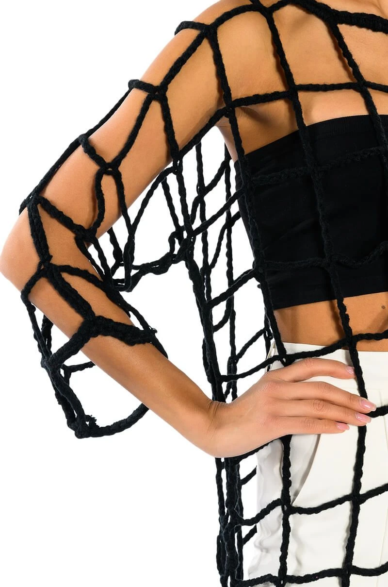 The AKIRA Label Amara Wide Knit Long Sleeve Midi Dress is made from an unlined acrylic base and features sheer knit netting, a high, square neckline, long sleeves, a scalloped hem, a midi length silhouette, and a slip-on design. Wear this piece over bodysuits or bathing suits to show off your cute layered look!