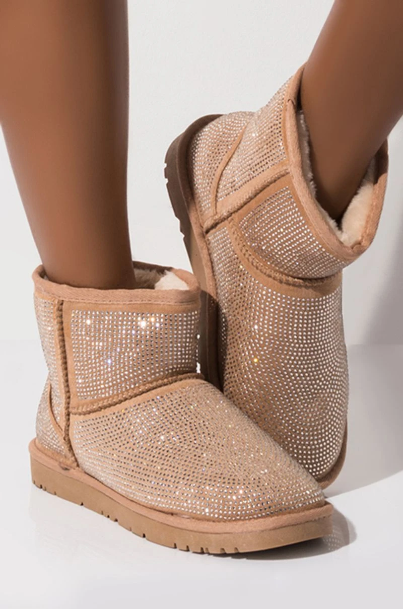 AZALEA WANG ALL NIGHT LONG RHINESTONE MINI ANKLE BOOTIES