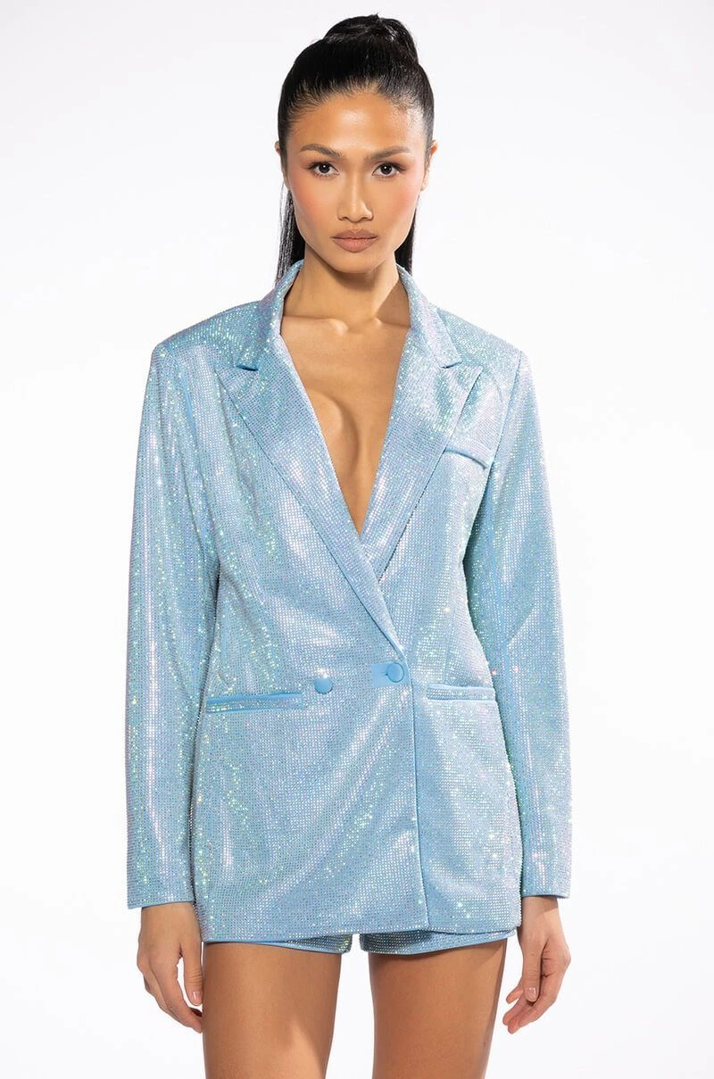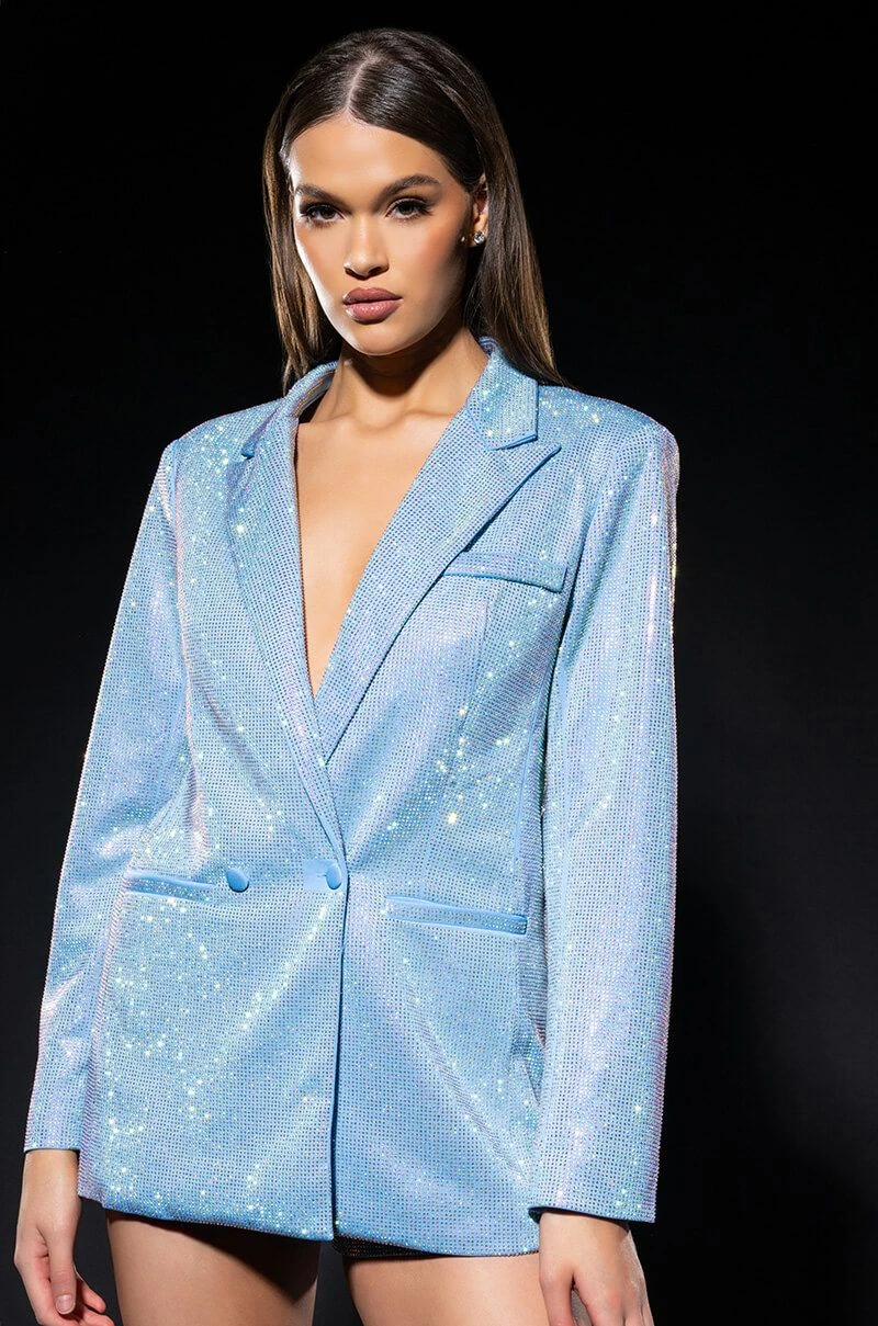 POP STAR SHINE BRIGHT RHINESTONE BLAZER IN LIGHT BLUE