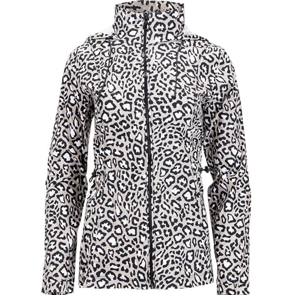 Tail Nola Jacket is a pretty water resistant jacket with drawcord neck and waist. Full zipper and side zip pockets. All over amazonia print. Flattering fit.