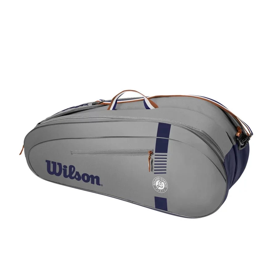 This Wilson Roland Garros Team 6 Pack is inspired by the world’s greatest clay court tennis tournament, the Roland Garros Team collection offers an assortment of reliable and sharp bags. It features two main compartments for main tennis equipment and gear, which can hold up to six tennis rackets. Among other features, the backpack has a large zippered exterior pocket for small accessories and reinforced piping along the fabric for impressive durability. For the finishing touch, the official Roland Garros logo is embossed on both sides.